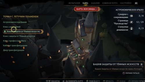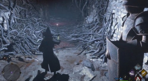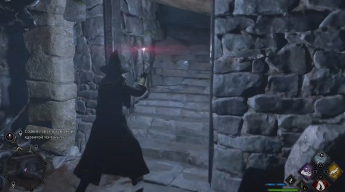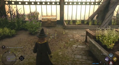 Оказавшись внутри, двигайтесь вперед по каменному коридору. Вскоре вы увидите впереди дьявольские силки, которые не дадут вам пройти дальше. Используйте Люмос, чтобы создать яркий свет и отпугнуть опасные растения. Двигайтесь вперед, поглядывая постоянно направо. Вскоре вы увидите проход, ведущий к лестнице. Поднимитесь по ней наверх, сверните влево, зажгите факелы и откройте сундук на противоположной стороне. Внутри вы найдете снаряжение.