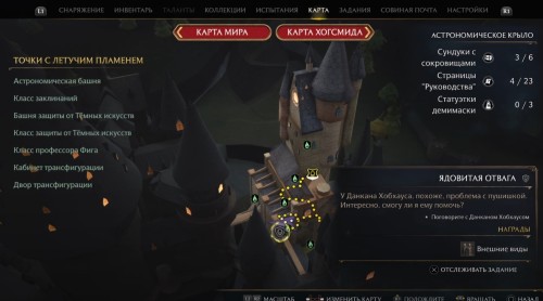 Разобравшись с указанными выше условиями, отправляйтесь в Башню защиты от темных искусств, расположенную в Астрономическом крыле. На 1-м этаже позади лестницы вы обнаружите студента по имени Данкан Хобхаус. Поговорите с ним и согласитесь помочь ему добыть лист тентакулы.