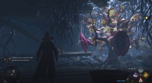 Внутри будет еще больше дьявольских силков, поэтому держите Люмос в активном состоянии. Идите вперед к огромному растению, приблизьтесь к нему и просто сорвите лист. Теперь вы можете возвратиться к Данкану, воспользовавшись лестницей, находящейся справа от тентакулы.
