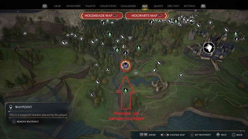 Возможность получить карту появится в процессе выполнения квеста «Последняя надежда Скроупа». Пергамент ожидает игрока в сундуке, скрытом внутри помещения, которое примыкает к гроту Аполлонии Блэк. Потайной проход откроется после того, как вы решите загадку с пьедесталом в ходе сюжетного квеста факультета.