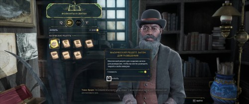 Также придется отправиться в магазин и купить чертеж самого загона, где смогут жить магические звери. Перейдите на карту Хогсмида и воспользуйтесь локальной точкой перемещения, затем направляйтесь в лавку фолиантов и свитков, где за 1000 золотых и продается нужная схема. Полистайте свитки в ассортименте магазина, возможно, вы захотите купить что-то еще для своего будущего зверинца.