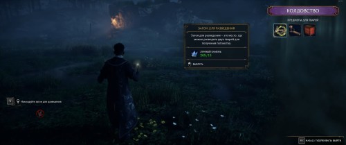 Когда таймер отсчитает указанное время, вы найдете на полянке с фестралами их детеныша. Покормите и расчешите его с помощью указанных на скриншоте заклинаний. Подробнее об этих и других чарах в игре расскажет другая наша статья.
