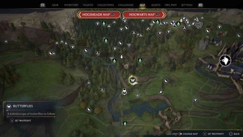 Отправляйтесь в Хогсмид и войдите в трактир под названием «Три метлы», который расположен в самом центре поселения. Оказавшись внутри, пройдите в дальний левый угол помещения. Там вы найдете девушку по имени Клементина Уиллардси. Поговорите с ней и согласитесь помочь в поиске бабочек.