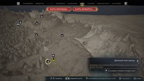 Если вы еще не получили метлу и не открыли большинство точек телепортации, то быстрее всего добраться до нужного места можно будет от любого летучего пламени в Хогсмиде.