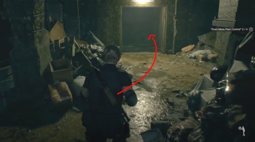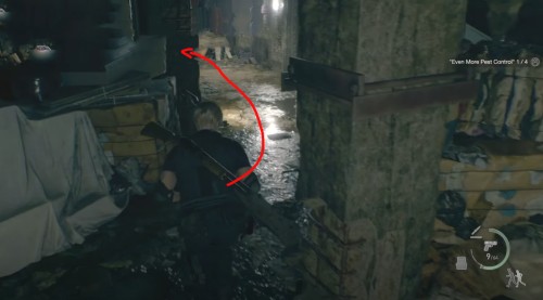 Развернитесь, бегите к развилке и на этот раз поверните направо. Попросите Эшли поднять мост с помощью вентиля. Перейдите на другую сторону, и рядом с горой мусора вы обнаружите вредителя.