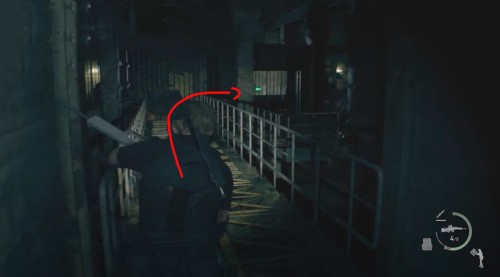 Разобравшись с предыдущим грызуном, забегите в проход слева, включите фонарик и двигайтесь вперед. Пройдите в следующий проход слева. Будьте осторожны, так как здесь на вас может напасть монстр. Разобравшись с чудищем, поверните влево, пройдите по мосту и сверните вправо.