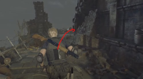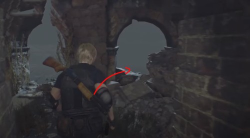 Теперь бегите вглубь руин, поверните направо и войдите в полуразрушенную постройку. Пройдите немного вперед к проходу и чуть выше каменной арки вы увидите новую подвеску.