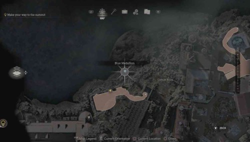 Разобравшись с прошлым медальоном, поверните камеру в сторону обрыва и подойдите к его краю. Внизу над полуразрушенной каменной аркой вы обнаружите нужный синий предмет.