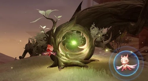 От предыдущего деревца пройдите на северо-восток, а потом спрыгните с обрыва вниз. Там вы обнаружите следующий нужный вам объект. Подойдите к нему, вызовите Соруш, активируйте ее навык и поговорите с духом.