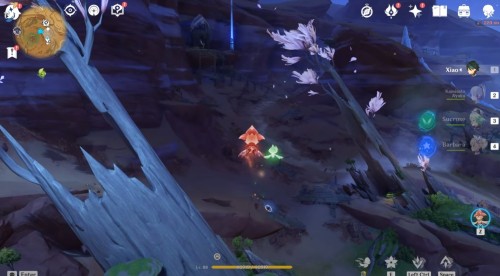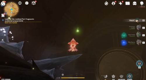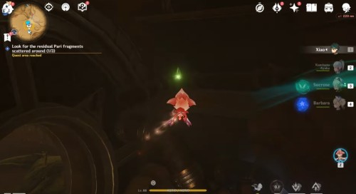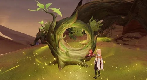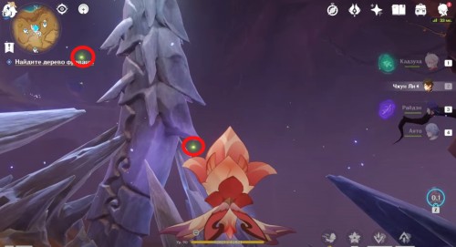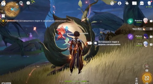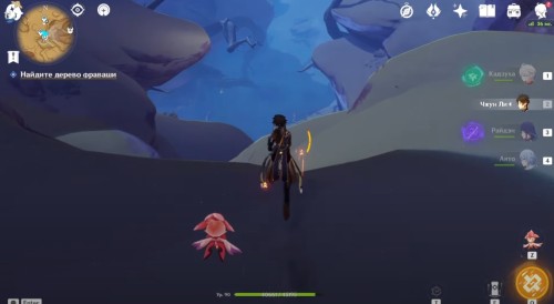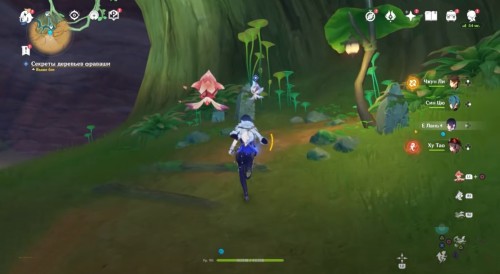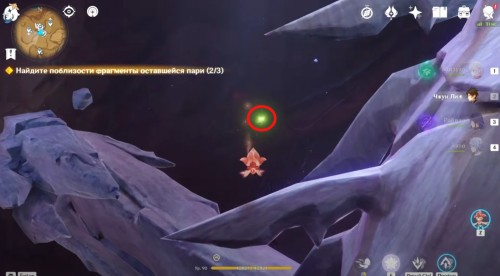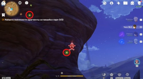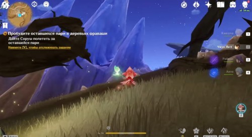 Здесь вам предстоит сразиться с группой хиличурлов и одним митачурлом, поэтому советуем заранее подготовить боевой отряд. Впрочем, эти противники не должны вызвать у вас серьезных проблем. Далее снова пообщайтесь с зеленой пари для получения оперенья и богатого сундучка.