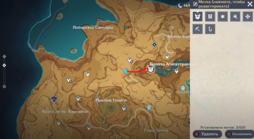 Переместитесь к южному телепорту побережья Самудры, а затем двигайтесь на юг к огромному утесу и обойдите его с левой стороны (взбираться никуда не нужно). Далее поднимитесь по небольшому склону справа, и вы обнаружите нужный объект. Призовите Соруш, активируйте ее навык и пообщайтесь с духом.