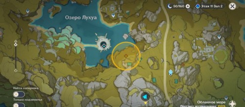 Здесь победите группу хиличурлов, митачурла и двух детенышей геовишапов. Заберите богатый сундук.