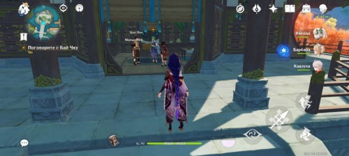 Спуститесь по лестнице из хижины к каменному мосту, где стоит Ху Тао. Девушка расскажет о наставнике Бай Чжу, который приходится ей двоюродным дедушкой.