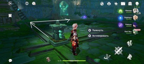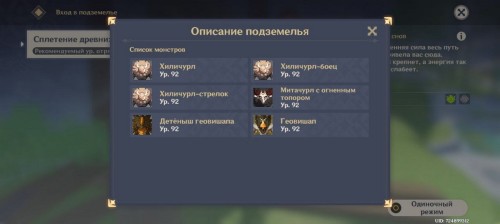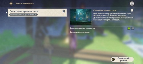 Войдите в подземелье. Здесь вам придется сражаться с хиличурлами, митачурлами, геовишапом и детенышами геовишапа. Игра рекомендует взять Дендро и Гео героев – впрочем, на прохождение подземелья элементы в вашем отряде никак не повлияют. Кроме того, вы получите Дендро каталиста Бай Чжу в качестве пробного героя.