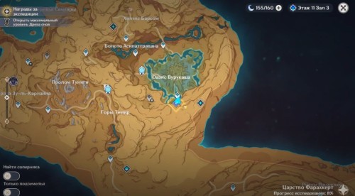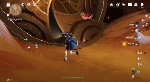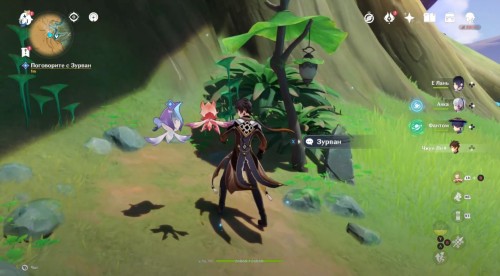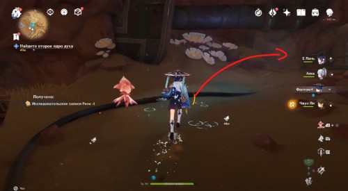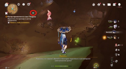 Теперь необходимо снова поболтать с Наседжуной. Для этого переместитесь к статуе семи Архонтов в горах Темир и спланируйте в южном направлении. Вы обнаружите нужного персонажа на деревянной площадке.