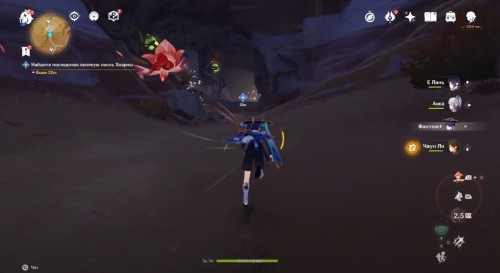 Идите через открывшийся проход и на развилке сверните вправо. Войдите в новое помещение и разберитесь с группой хиличурлов. Пройдите по металлическому помосту и начните идти за феей. Спрыгните вниз, а потом заберитесь наверх. Бегите вдоль труб и поверните налево. Доведя фею до домика, вы получите обычный сундук.