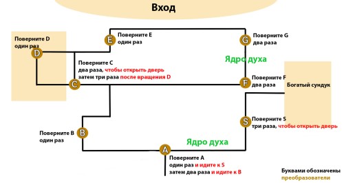 Поверните преобразователь «А» один раз, а потом трижды поверните «S», чтобы добыть богатый сундук за открывшимся проходом справа. Теперь возвратитесь к «А», и поверните его еще два раза.