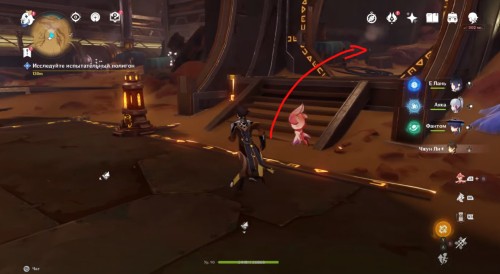 Итак, пройдите через проход, на который вам укажет игра. Поднимитесь по туннелю наверх. Выйдите в знакомую область и сверните влево. Спуститесь вниз по ступенькам к квестовому маркеру. Снова поболтайте с Наседжуной и пройдите на испытательную площадку.