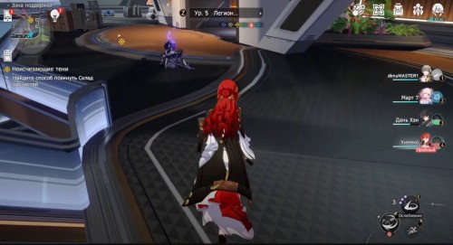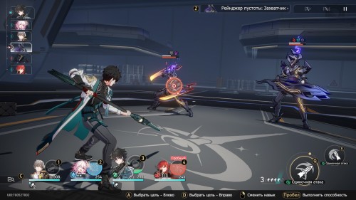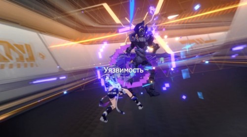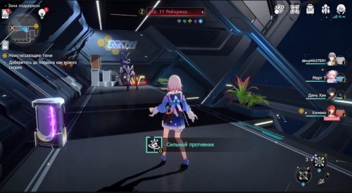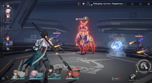 Продолжайте двигаться к лифту. Затем начнется кат-сцена, после которой вам предстоит сразиться с мини-боссом Рейнджером пустоты: Подавителем (3 уровень). Он уязвим к ветряному урону, поэтому используйте на нем навыки и сверхспособность Дань Хэна. Оберегайте этого дамагера щитом Март 7.