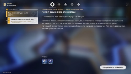 Далее посмотрите продолжительную кат-сцену с Кафкой, Март 7 и Дань Хэном. После ее завершения миссия подойдет к концу. В награду вы получите 5 тысяч кредитов и 600 опыта освоения.