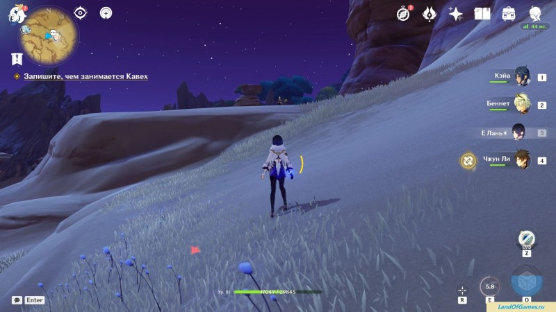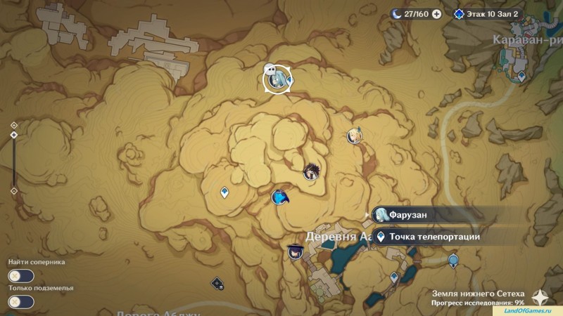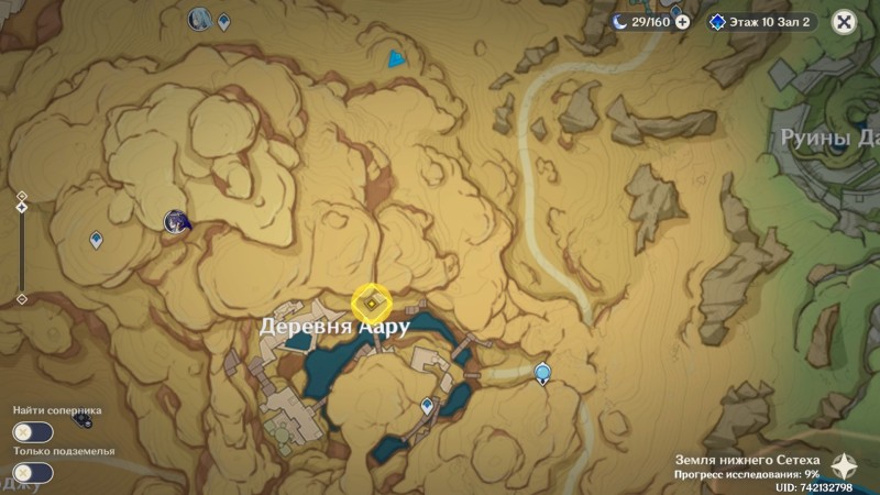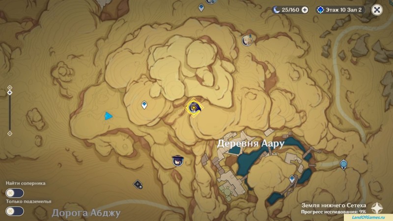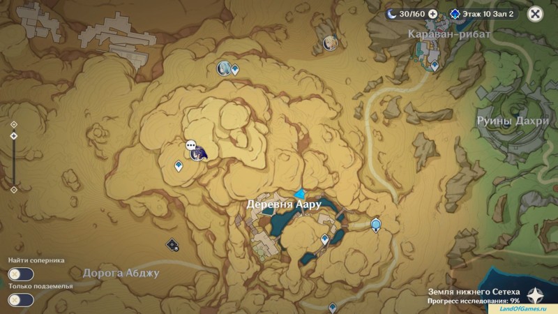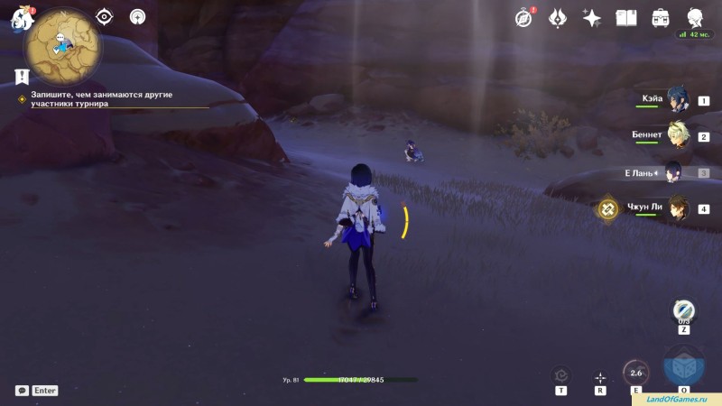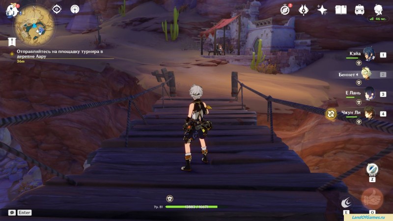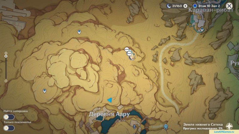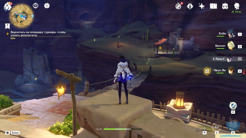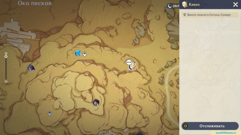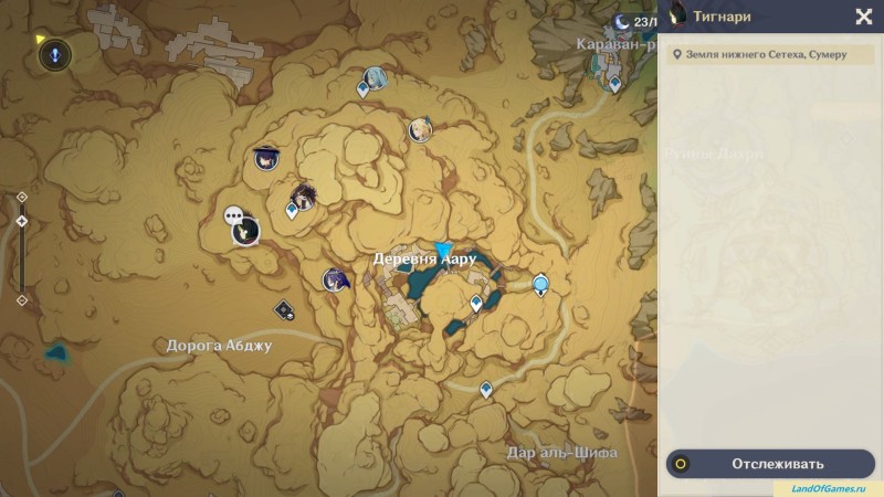 Фаворит первого этапа – Тигнари, поэтому наблюдение за соревнованием предлагается начать с него. Откройте карту, найдите нужную иконку и поставьте ее местонахождение на отслеживание, так вы сможете быстро найти цель даже на мини-карте. Доберитесь до хижины на западном склоне поселения и понаблюдайте за событиями.