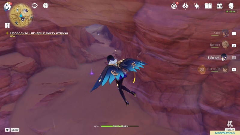 Спланируйте с верхней части каньона вниз, к более прохладным и укрытым от солнца расщелинам. Засвидетельствуйте диалог, достойный быть увековеченным на страницах библиотеки Мондштадта, а затем возвращайтесь к наблюдению за турниром.