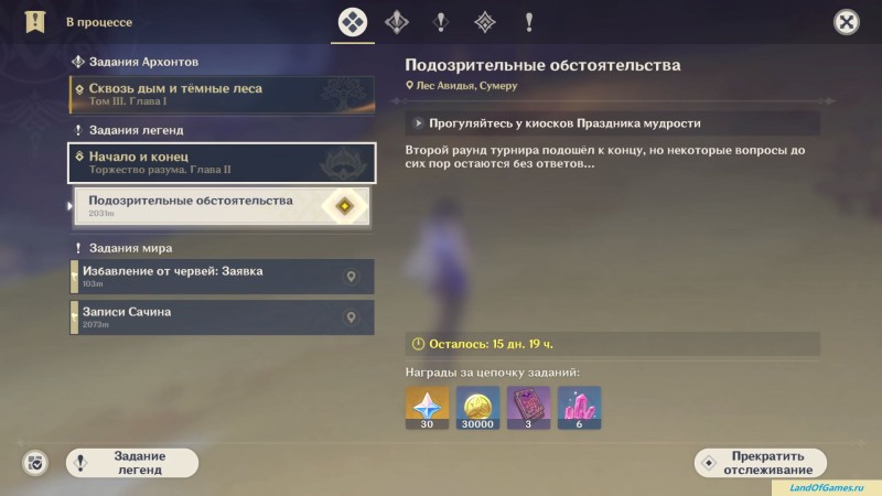 Данное поручение является второй частью сюжетной линии весеннего праздника в Сумеру, поэтому приступить к нему вы сможете только после завершения вступительной части мероприятий. Открытие фестиваля и предварительные требования для начала этой цепочки описаны в предыдущей статье. Если все требования выполнены, миссия автоматически появится в вашем журнале заданий и будет открыта в разделе «Турнир даршанов» на вкладке фестиваля в окне игровых событий.