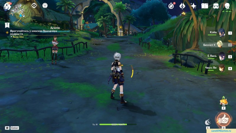 Несложно догадаться, к кому вас отправят за консультацией. Поискать аль-Хайтама вполне логично у столика для жюри возле сцены фестиваля, так что просто покиньте Академию и спланируйте с балкона вниз, к Нилу. Увы, девушка не знает, куда направился господин секретарь.