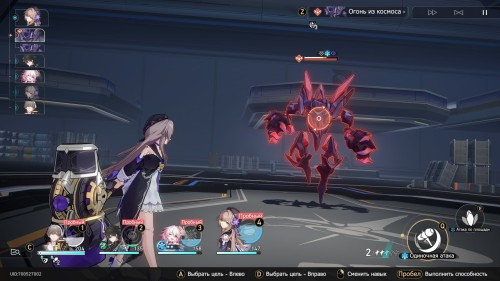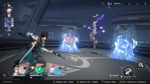 Двигайтесь дальше к финальному противнику. Все мобы в этом поединке уязвимы к физическому урону, поэтому начните бой с удара главного героя. Перед этим можете также активировать технику Герты для повышения силы атаки. Затем обязательно используйте навыки протагониста и Герты для нанесения максимального урона врагам и пробития их щитов.