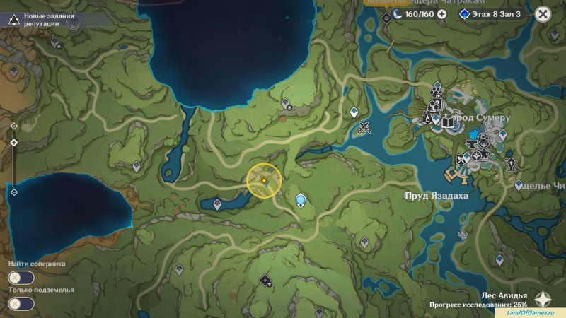 Отправляйтесь в лес Мотийимы, который расположен к северо-востоку от Сумеру. Как только вы приблизитесь к отмеченной точке окажется, что диадемы знания там уже нет.