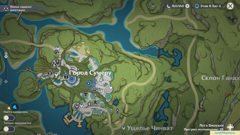 Официальное место проведения турнира расположено все там же, под балконом сумерской Академии. Достаточно воспользоваться восточным городским телепортом и спланировать вниз к сцене. Возникшие подозрения уже поздно проверять, ведь диадема отправлена на площадку финального испытания, поэтому придется разбираться со всем уже на месте.