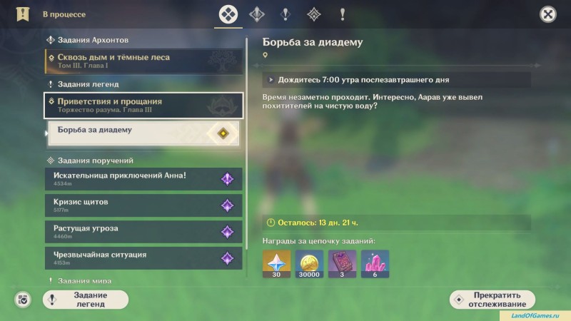 Это поручение начинает заключительный этап турнира даршанов, поэтому приступить к нему получится только после прохождения предыдущего состязания. Как только оно будет завершено, «Борьба за диадему» автоматически появится в вашем журнале заданий.