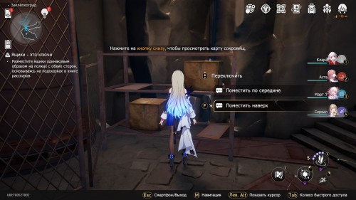 Итак, подойдите к левому стеллажу и возьмите средний ящик, а потом приблизьтесь к правому стеллажу и поставьте коробку наверху. У вас должно получиться так, как показано на изображении ниже. В итоге появится ценный сундук – не забудьте открыть его.