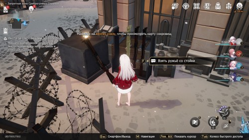 Телепортируйтесь к якорю «Передовая Запретной зоны» указанной локации, а потом поверните камеру немного вправо и наверх, – вы сразу же увидите страничку, висящую на стене. Возьмите ее и изучите. В ней будет говориться о 4 стойках, в каждой из которых должно быть по 3 ружья.