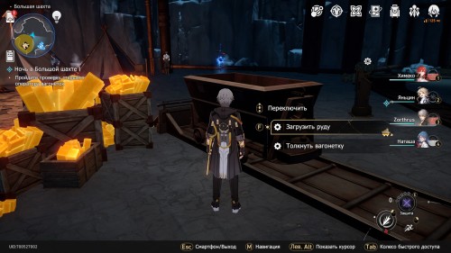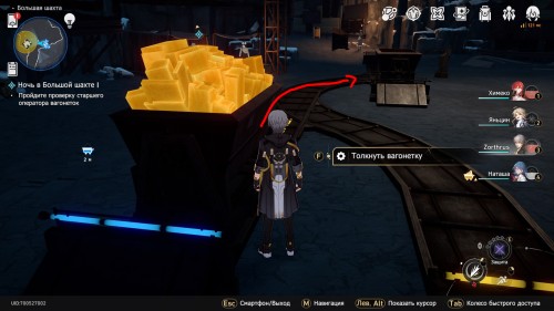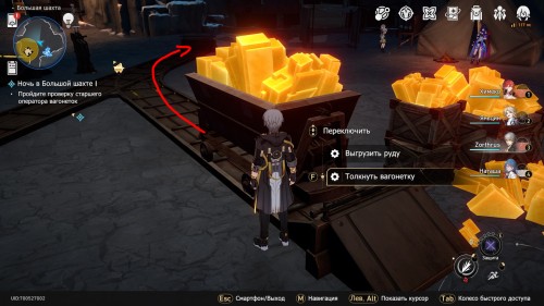 Подойдите к вагонетке и выберите опцию «Загрузить руду»