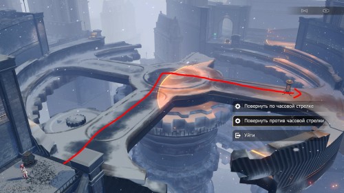 Спуститесь по лесенке, сверните влево, подберите ядро и вставьте его во второе устройство. Затем взаимодействуйте с контроллером слева и выберите опцию «Повернуть мост против часовой стрелки»