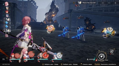 Снова нажмите на контроллер и опять поверните мост против часовой стрелки. Двигайтесь направо, где вас будет ждать босс Лед из космоса. В первую очреедь разберитесь с рядовыми мобами, чтобы снизить поступающий урон, а потом сконцентрируйте все атаки на боссе. Постоянно сбивайте его стойкость, чтобы держать в оглушенном состоянии. Не забывайте лечить персонажей или ставить на них щиты.