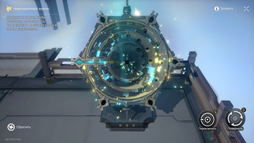 Расправившись с противником, спуститесь по лестнице вниз и поверните налево. Здесь вы обнаружите компас. Взаимодействуйте с ним для старта загадки. Вам нужно повернуть его оранжевые стрелки так, чтобы они смотрели в ту же сторону, что и выпирающая синяя стрелочка.