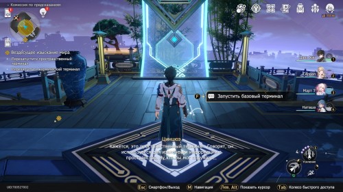 Итак, пройдите через телепорт, на который указывает маркер, чтобы перенестись на площадку с временным терминалом. Затем встаньте на ромбовидную платформу и нажмите на кнопку для запуска базового терминала.