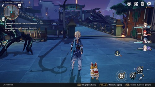 Расправившись со всеми монстрами, воспользуйтесь ширмой телепортации, чтобы перенестись на противоположную платформу. Пройдите вперед и поговорите с мастером Гуншу. Он передаст вам робота-пса Дитина для исследования местности.