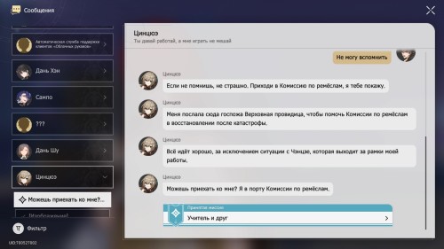 Выполнив указанные требования, дождитесь прихода сообщения от Цинцюэ, а затем ответьте на него. После этого телепортируйтесь к якорю «Тайный причал» Комиссии по ремеслам и отыщите там свою знакомую – вступите с ней в диалог.