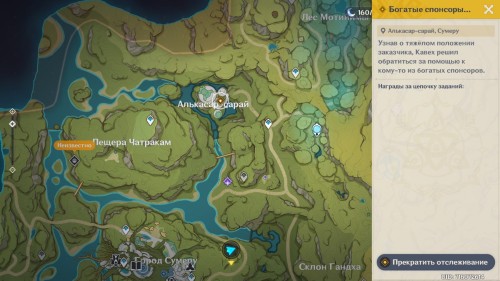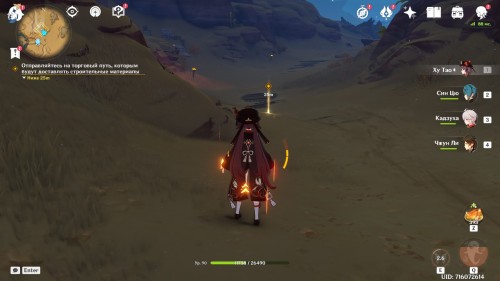 Вам нужно проверить торговый путь, по которому будут доставлять стройматериалы. Переместитесь к статуе семи архонтов возле деревни Аару, а затем пройдите немного на северо-восток к квестовому маркеру.