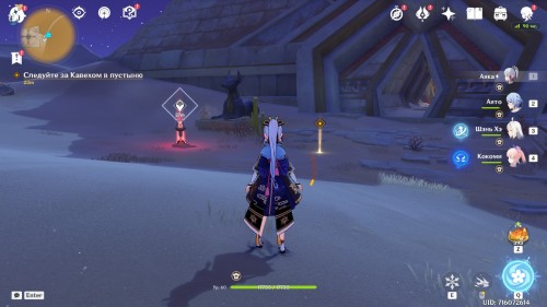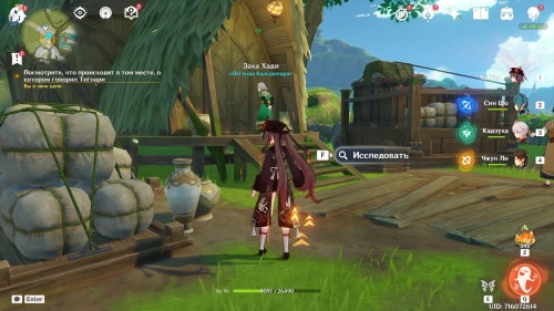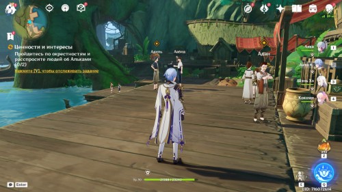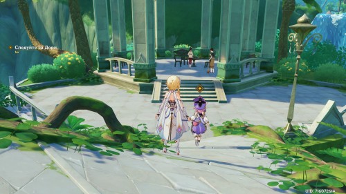 Вам предстоит отыскать профессора Заху Хади. Для этого направляйтесь сначала к северному входу в город. Там вы обнаружите Тигнари. Поговорите с ним. Далее отправляйтесь к месту, на которое указывал «ушастик». Здесь вы найдете нужную вам исследовательницу – поболтайте с ней.