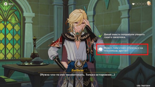 Маршрут развилок: Спор с заказчиком -> Задушевный разговор в таверне -> Дорогая сердцу вещь -> Запертое сообщение -> Компания – единственное противоядие