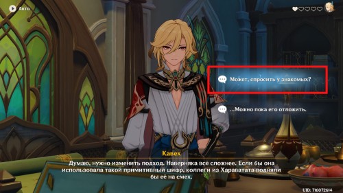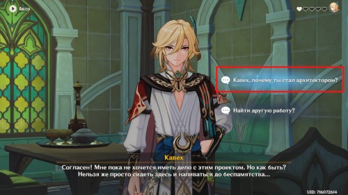 Вам нужно будет отправиться домой к Кавеху, расположенному в городе Сумеру. Войдя внутрь, поговорите с архитектором. Вам нужно будет сказать ему следующее: