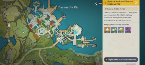 Направляйтесь в северно-восточную часть гавани. Поговорите с Ху Тао о ее победе в турнире. К разговору присоединятся Шарлотта и Нин Гуан. Глава Цисин расскажет некоторые подробности об уникальной карточной рубашке, за которой охотился вор. На этом квест завершится.
