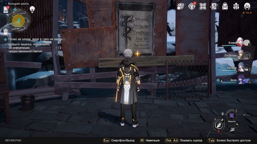 Продолжайте двигаться на запад по узкой улочке. В центре отмеченной области отыщите подозрительный плакат и взаимодействуйте с ним. Однако явной уликой он не является.