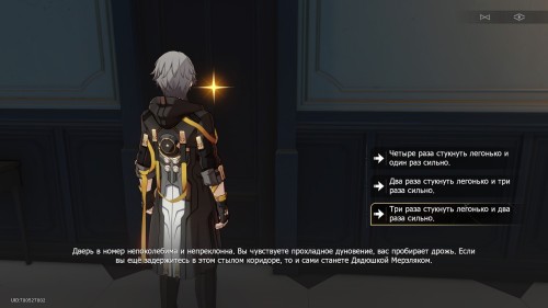 Подойдите к отмеченной двери, а потом постучите в нее определенным образом: «Три раза стукнуть легонько и два раза сильно»