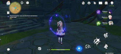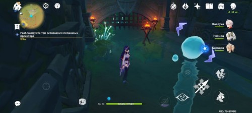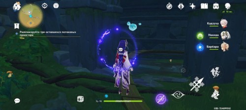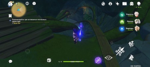 Потушите факелы с помощью Гидро (или раздуйте воду с помощью Анемо), чтобы капелька прошла дальше. Вновь воспользуйтесь четырехлистным символом и двигайтесь дальше.