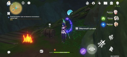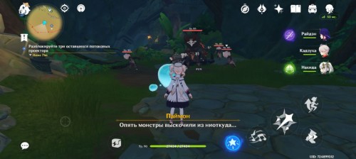 Следуйте за капелькой. Вам снова попадутся монстры – Пиро слаймы и хиличурлы. Капелька превратится в Гидро мимика и немного поможет вам в сражении.